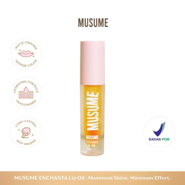 Oleskan Enchanta Lip Oi by Musume pada bibir, dapat digunakan sesering yang dinginkan sebagai perawatan bibir setiap saat sepanjang hari.